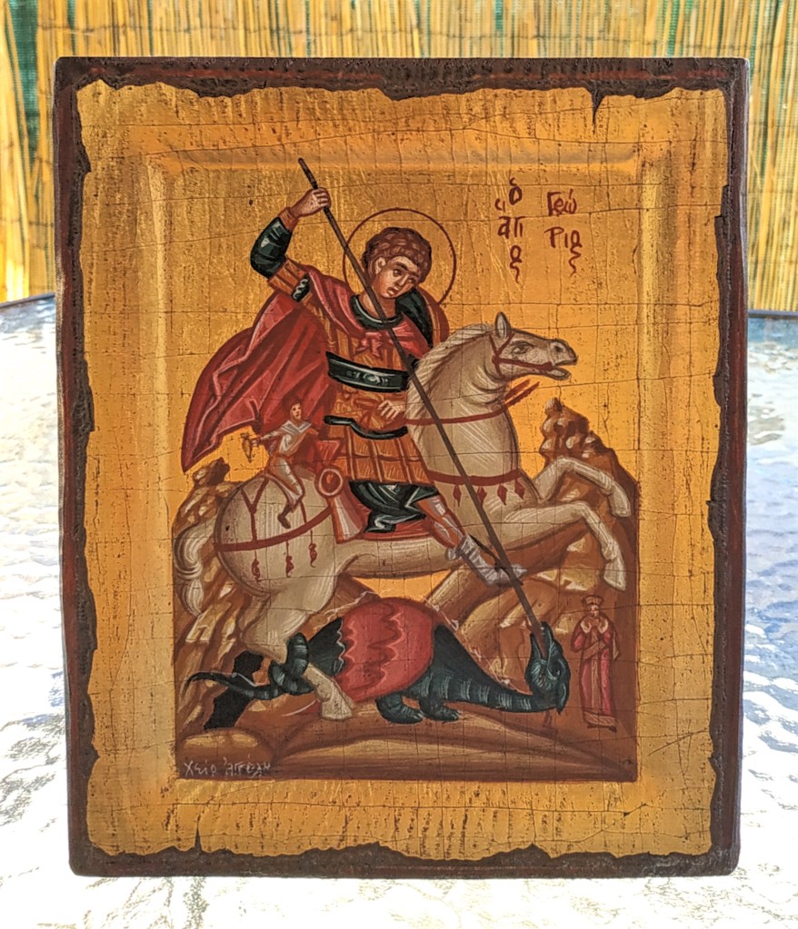 THE PHOTO ACCOMPANYING THESE WORDS is of an icon hand-painted on wood by a Greek Orthodox monk which depicts George slaying the dragon. This precious icon is placed near where I sit when writing, so as to inspire and encourage me in the formation of my words. It really represents the Archangel Michael battling against the fallen, apostate Archangel Satan, who is depicted symbolically as a dragon in an account of that battle in chapter 12 of the prophetic Book of Revelation, which was written over nineteen-hundred years ago on the Greek island of Patmos, which is about 300 kilometers (190 miles) from where I am sitting right now in Athens, Greece, as I write these words. I have that icon near me as a symbolic reminder that the angels and I do battle against just the kind of empty darkness which so many people ignorantly celebrate today.